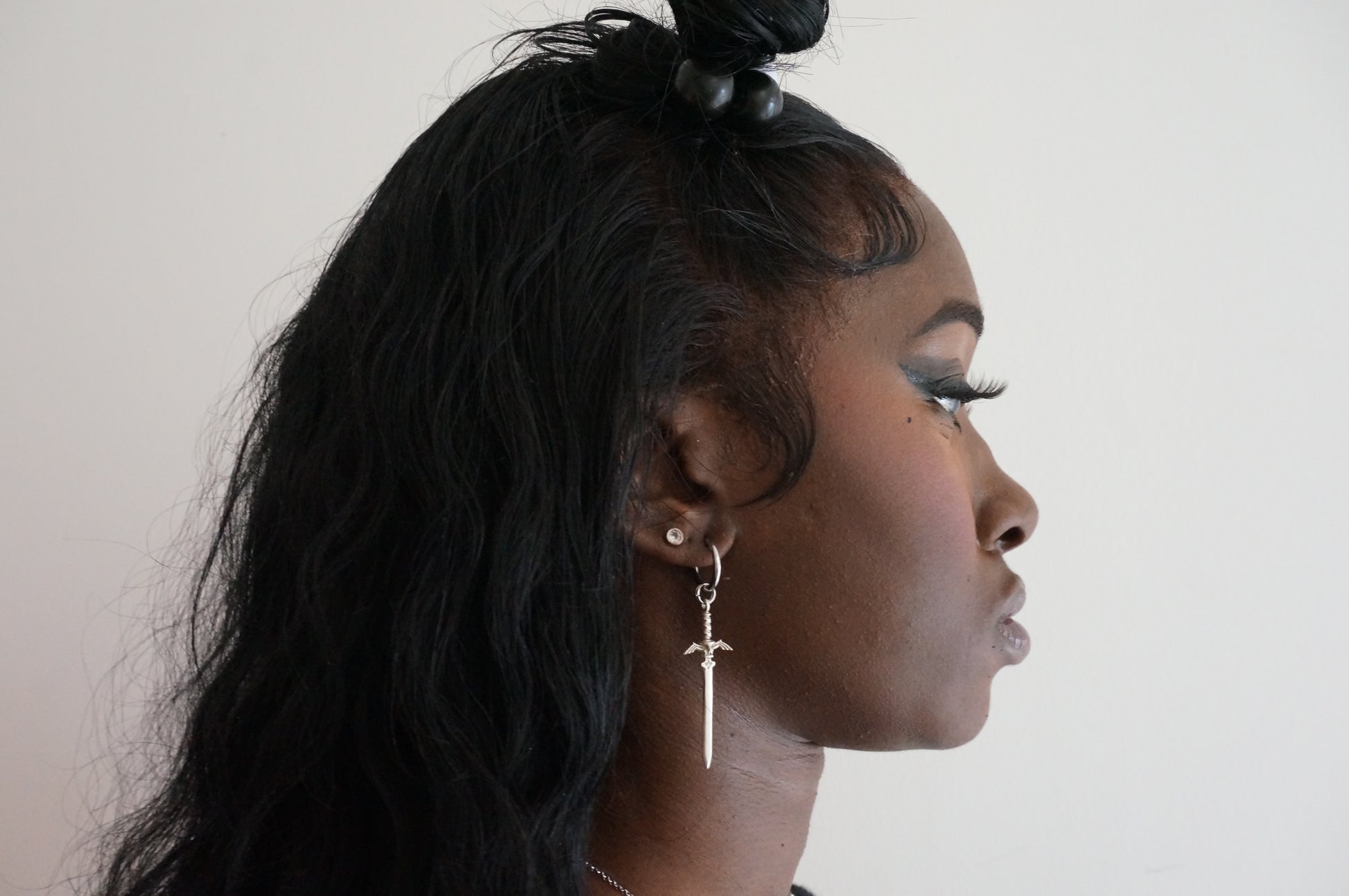 LEGEND Gold / Silver / Gunmetal Sword Huggie Hoop Earring SINGLE / Zelda Master Sword Earring